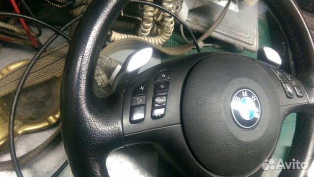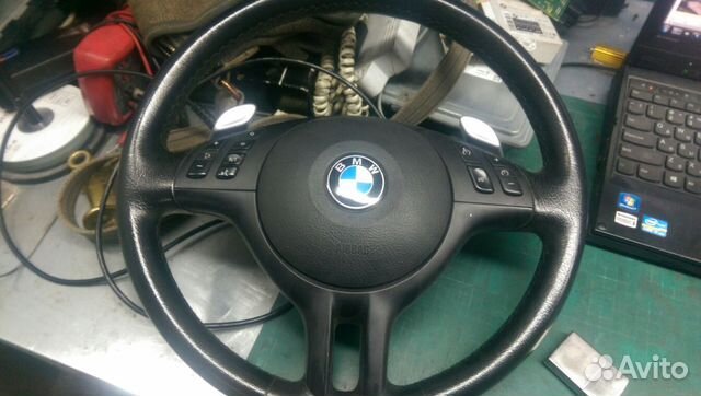 абсолютно новый оригинальный руль. вставка - темное дерево. лепестки уже переделаны под переключение акпп. схему подключения подскажу купившему данный руль - хоть на 36, хоть на обычную 46 (не смг) ах да - цена 300долл. и к 4-х ступке тоже)